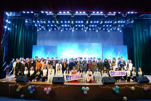 2019年12月1日晚,太阳集团tyc4633“Dream Chaser”双语迎新晚会在安吉校区老员工活动中心举行。公司领导班子成员、系主任、外籍教师代表、班主任和辅导员老师出席本次晚会,全院师生共聚一堂,赏青春展风采,迎公司新气象。
