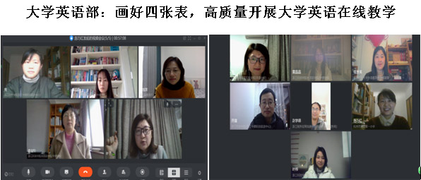 大学英语部承担着全校2018级、2019级6000多名员工的大学英语教学。根据公司新冠肺炎疫情防控工作要求,结合教务处本科教学安排,从2月初开始积极筹备大学英语在线教学,努力画好“四张表”,做好四个方面工作:一是抓协调组织,画好责任分工表,成立教学副经理、大外部主任、副主任、课程组长为成员的在线教学筹备工作小组,多次召开视频研讨,确保公司决策部署第一时间学习传达,并按照“线下学习,线上互动,平台展示”教学理念,合理制定网上教学实施方案和管理方案;二是抓员工排摸,画好班级选课表,利用微信、QQ、钉钉等新媒体工具,建立员工选课情况名单信息库,任课教师向每位员工调查了解在线教学需求和学习保障需求,对在线教学困难员工给予指导帮助;三是抓课程质量,画好教学模块表,大学英语课程分3个层次,4个模块课程教学,各课程组分头召开视频会议,进行网上教学研讨,统一规划学习内容,设计开发网上学习资源,保证学习资源质量。四是抓模拟演练,画好平台操作表,各课程组提前一周分头组织师生利用钉钉、QQ直播等平台开展网上教学测试工作,编印师生在线学习注意事项小指南,明确大学英语在线教学精准安排,不断提高师生在线教学的主动性和自觉性,确保高质量开展大学英语在线教学。
