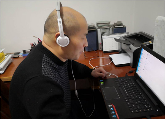 由于疫情,不能正常返回公司上课,但是按照外语公司的指示,停课不停学。要求老师们在电脑上进行钉钉直播,一下子变身在线主播了,沈老师的心情还是比较激动的。由于之前从来没有接触过直播,他觉得压力山大。于是,在直播前进行各种测试,并在德语系建了一个交流学习群,在群里面大家都畅所欲言,交流人生的第一次直播经验,从声音是否清晰、画面是否清楚、如何连麦等等,发现问题大家共同解决。经过两周时间的准备,感觉得心应手了许多,也日益发现钉钉这种新事物对于教学上的帮助。