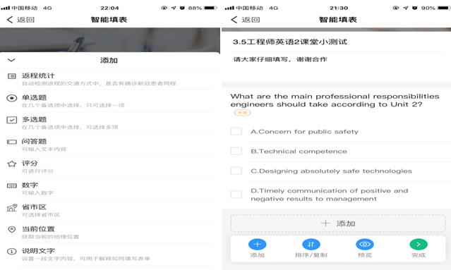 钉钉的“智能填表”具有“多选题”的功能,教师可以设计一些问题,随时了解员工对自身教学的情况,及时反思、改进。