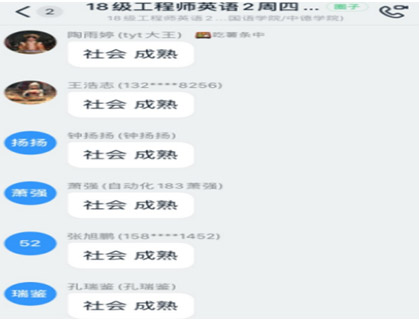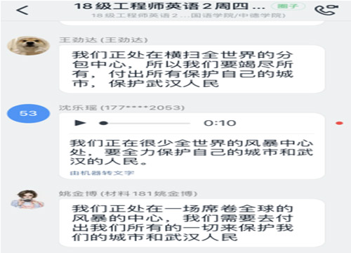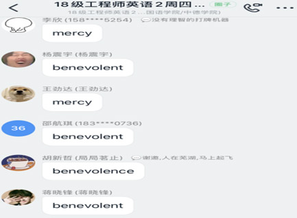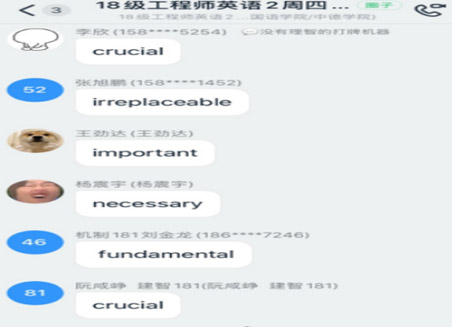 充分发挥手机能够无障碍语音输入功能、钉钉平台具有将语音及时转换成中文和英文的功能,以及每名员工均有电脑,可以快捷打字的便利。另外,教师也可以同步了解每一名员工的参与和学习情况,并同步了解员工中存在的问题,马上开展有的放矢的教学。如: