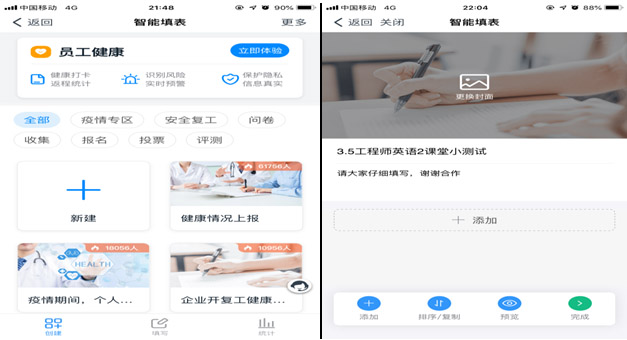 钉钉具有智能填表功能,教师可以利用这个功能在课堂上进行随堂小测试、听写单词,迅速组织员工互动参与到课堂中来;课后开展问卷调查。