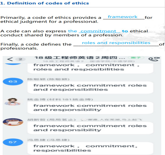 “离校不离教,停课不停学”,网络直播成为各高校的上课方式。网络直播上课时教师看不到员工,员工最多能看到老师的脸,与员工之间如何开展互动,成为教师的一大难题和挑战。教师无法与之前的课堂一样,实时、随时与员工沟通和交流,教师也无法实时了解员工的学习情况。针对上述困惑,我们在“工程师英语2”的第一次直播课中做了以下尝试,收到了非常不错的反响。