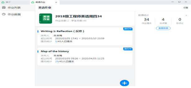 钉圈有“英语作业”栏目,通过“英语作业”教师可以布置相应的作业,批改网将会自动批改。建“钉圈”后进入“我的圈子”,找到“管理圈子”,左边栏“应用设置”,打开应用设置后,出现“英语作业”,点击“添加”,该应用程序就会显示在自己建的班圈中。