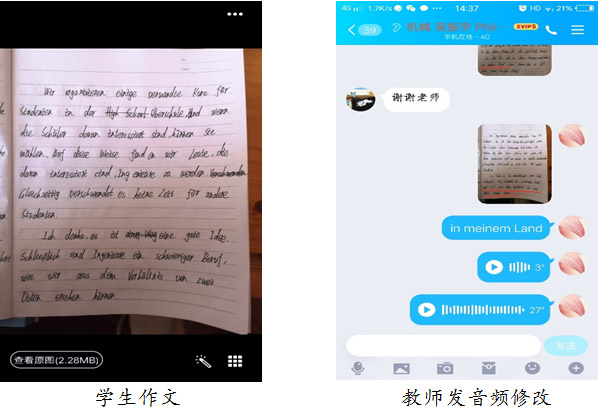 写作训练:写作耗时比较长,一般以周末作业的形式进行。员工修改后再通过QQ发给教师。教师指出问题,员工自主修改后再发给教师。对于没有批改正确的地方,教师发QQ语音和员工交流。