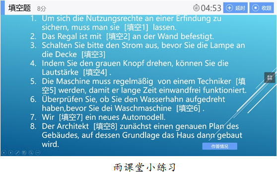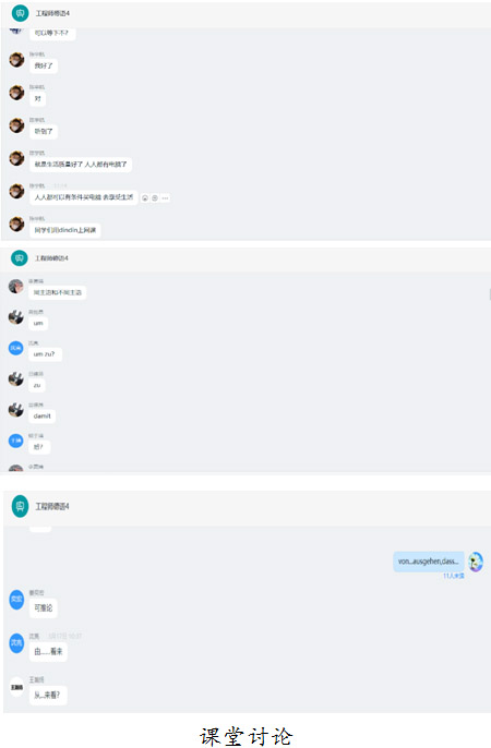 课中活动主要包括听、说、读、写的德语综合训练。受新冠疫情影响,员工本学期面临德福考试不确定性等问题,因此要求员工全面主动配合,保证课堂的学习效率。