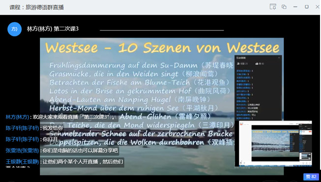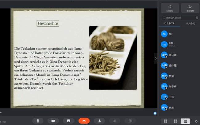 签到和道别:老师在课程须知中要求员工每次课提前五分钟进行签到,并在结束时作德语道别。一个月下来员工们完成情况很好,满满的仪式感让课堂有始有终、自成一体,同时也赋予课堂一种天涯若比邻般的云端亲近,拉进彼此的心理距离。