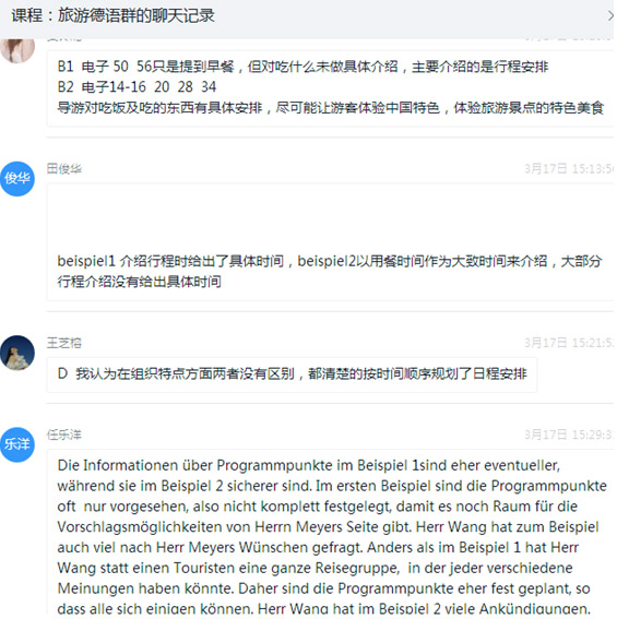 员工课堂小组报告展示:在教师导入主题内容的基础上,以“员工为主体”的课堂小组报告展示,既给员工提供学习成果展示的机会,调动自主学习积极性,很大程度上提高德语学习者知识内化和语言输出能力,同时又锻炼员工的团队协作能力,以小组为单位进行知识和技能交流,增加其获得感和成就感。