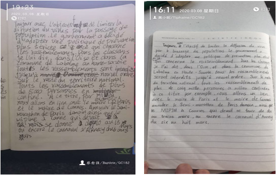 测试环节旨在引导员工课下的自主学习,巩固并训练已学知识和能力,包括系列习题小测、口笔语表达作业等形式。现阶段口笔语作业优先采用真实语料,结合抗击新冠肺炎疫情的时事,激发员工进一步的学习热情和兴趣。