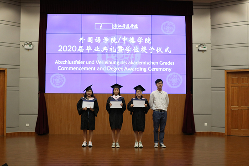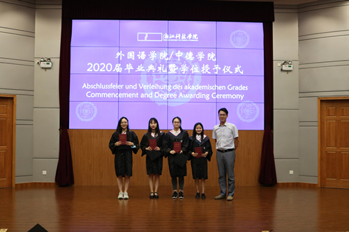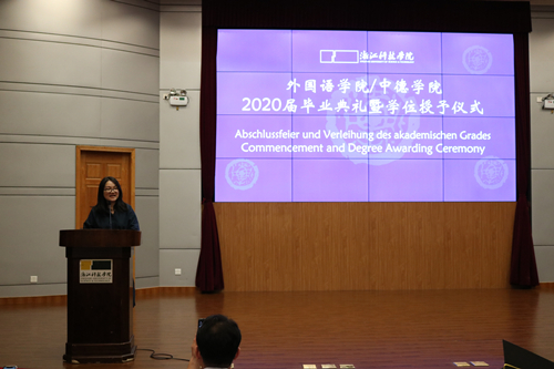 栀子花开季,毕业离别时。6月29日下午,外语公司/太阳集团tyc46332020届毕业典礼暨学位授予仪式在图书馆西报告厅举行。经理朱吉梅,党委书记汤力峰,副经理王旭莲、韩晓亚,党委委员、英语系系主任方小卿,德语系系主任德语161班班主任林方,英语系王金生教授,英语161班班主任范琳,英语162班班主任冯巧娥,辅导员高卓出席。活动由党委副书记戈洪伟主持。