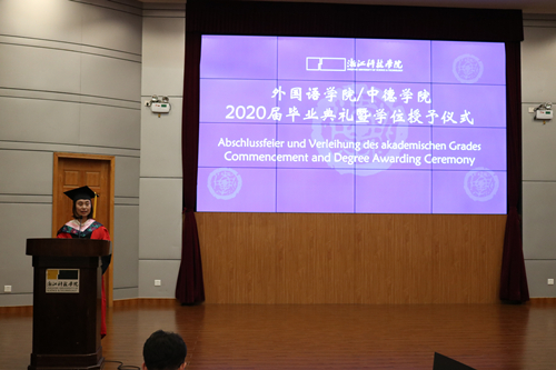 英语172班陈雅倩代表在校生深情回忆学姐学长们校园生活的点点滴滴,感谢他们的指导与帮助,祝福毕业生们拥有更加璀璨的未来。