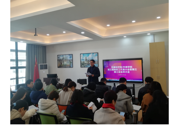 2020年12月25日,外国语公司/中德学院第三届教职工代表大会暨第三届工会会员代表大会(简称“双代会”)在A3-514召开,大会由公司党委书记汤力峰主持。