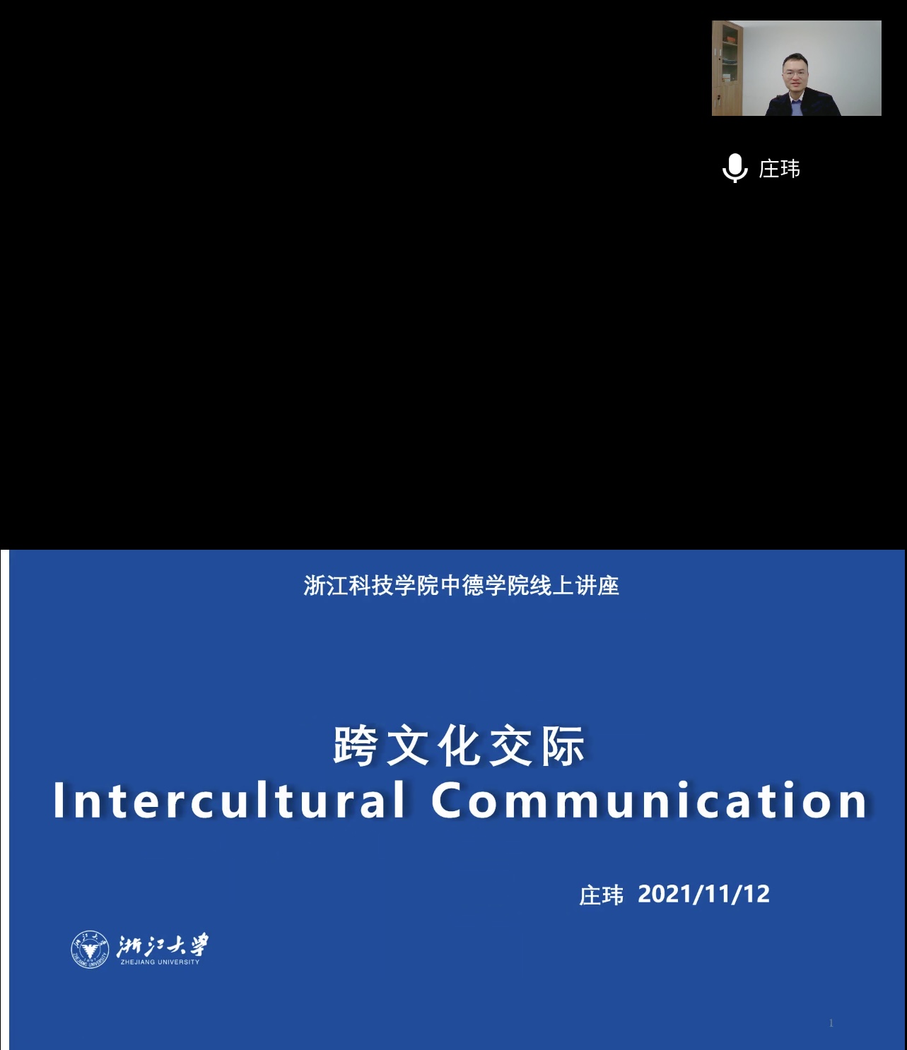 2021年11月12日,浙江大学外语公司德国学研究所 “百人计划”研究员、博士生导师庄玮副教授作客公司中德荟讲坛,云端开讲题为“跨文化言语交际﹑非言语交际和跨文化能力模型”的学术报告。太阳集团tyc4633全体德语教师、德语专业高年级员工聆听了报告。讲座由太阳集团tyc4633德语系主任林方副教授主持。