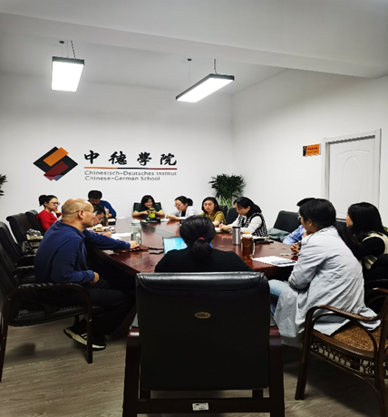 了传达和交流,接着布置了公司配合公司本科教学工作会议的系列举措。然后,教师们就立德树人、五育并举、深化三个融合、培养高素质应用创新型人才、推动本科教育高质量发展等五个方面进行了讨论,讨论结合德语专业教学和2+3联合培养德语教学。一线教师们提出了教学中的学风问题、课堂教学效果问题、生源问题、人才培养方面的问题。与会教师们进行了充分交流和深入探讨。