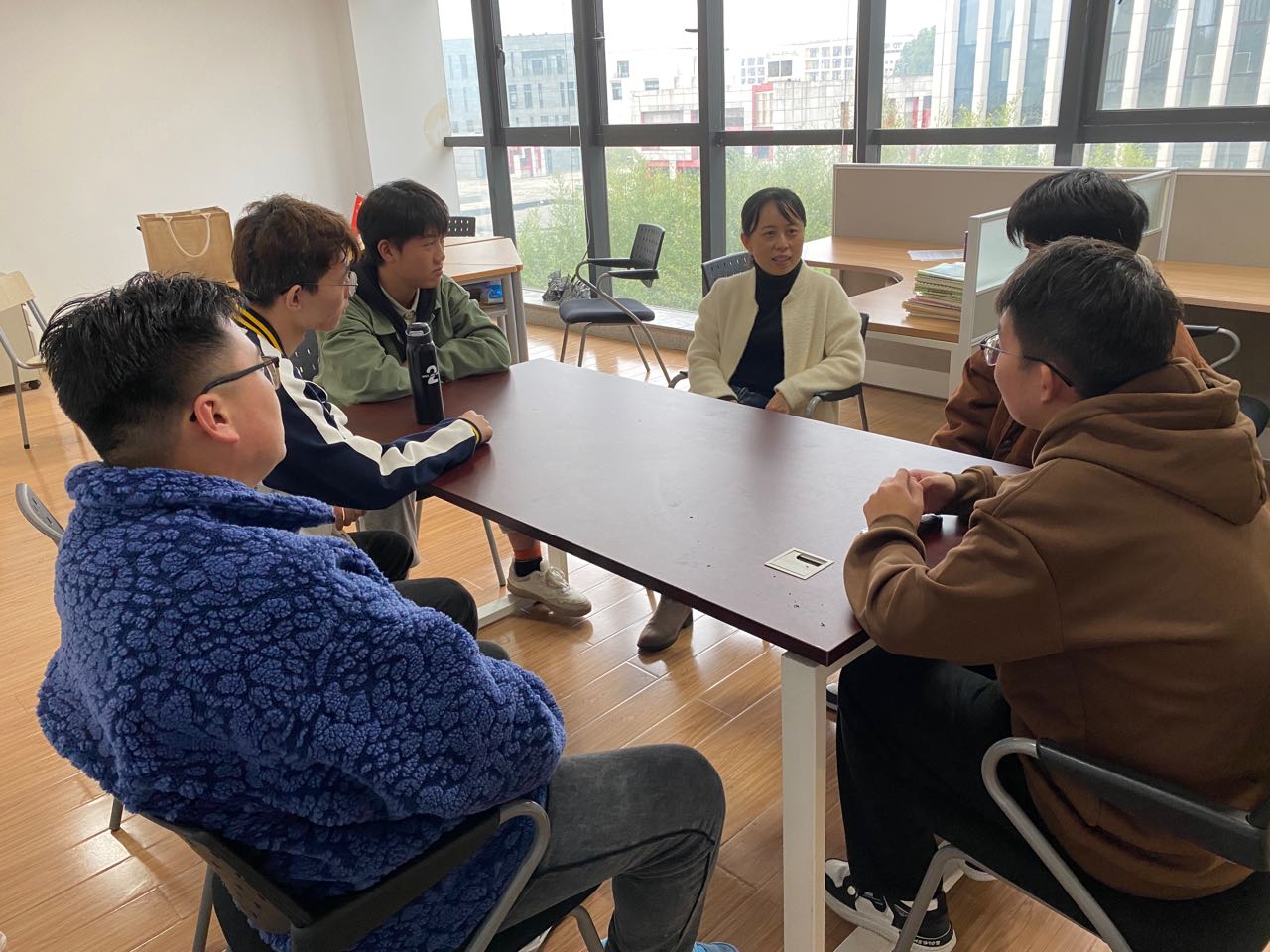 为进一步了解公司2022级新生在校的学习生活状况以及遇到的实际问题,充分落实以员工为本、全面发展的理念,期中考试结束后,公司创新员工思政工作方式方法,党政班子带头深入员工工作一线,通过个别交流、同乡座谈等形式,与安吉校区的大一新生进行亲切交流。