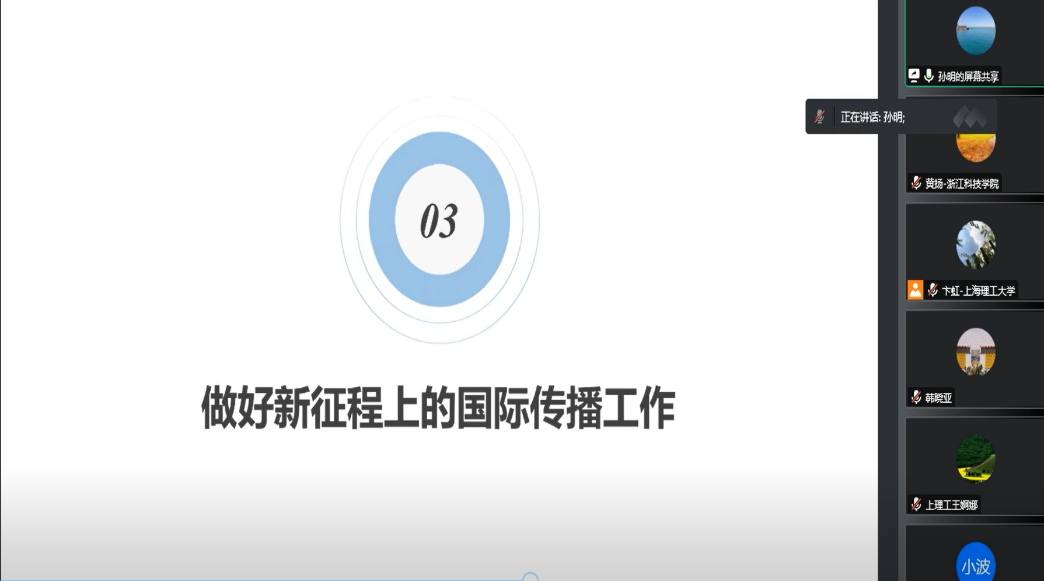 党的二十大开启了以中国式现代化全面推进中华民族伟大复兴的新征程,未来中国与世界的关系更加重要,中国的发展走向和内外政策也备受关注。讲座通过全面呈现国际社会和国际舆论关注党的二十大的深度、广度、锐度以及热点、重点和观点,共同探讨做好新征程国际传播的动力、潜力与实力;同时,也为教学中的课程思政提供了基于国家战略视角的建议和启发。