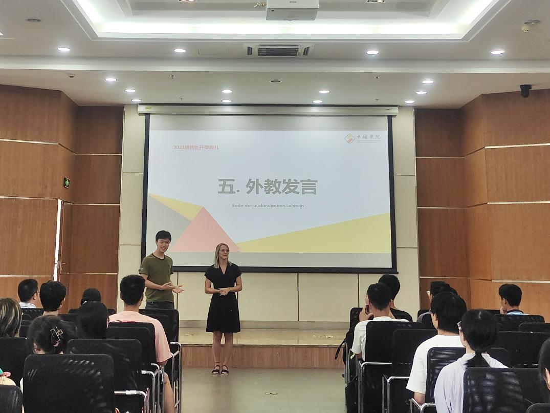 公司的外教团队亦是教师团队中的重要力量,彰显了公司的国际化办学方针,典礼上,来自奥地利的外教Daniela用德语介绍了自己,并对同学们表示热烈欢迎。