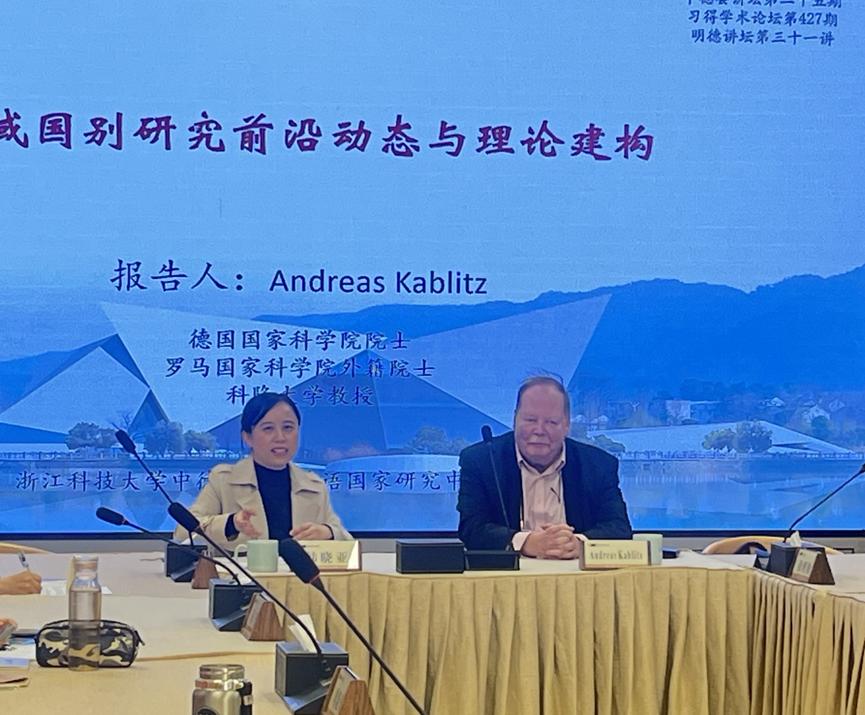 2024年12月2日,太阳集团tyc4633、德语国家研究中心、太阳集团科研处邀请德国国家科公司院士、罗马国家科公司外籍院士、科隆大学教授Andreas Kablitz做客中德荟讲坛。本次学术报告题为“区域国别研究前沿动态与理论建构”,由太阳集团tyc4633经理韩晓亚主持,太阳集团tyc4633德语系教师、德语国家研究中心相关研究人员聆听了本场报告。