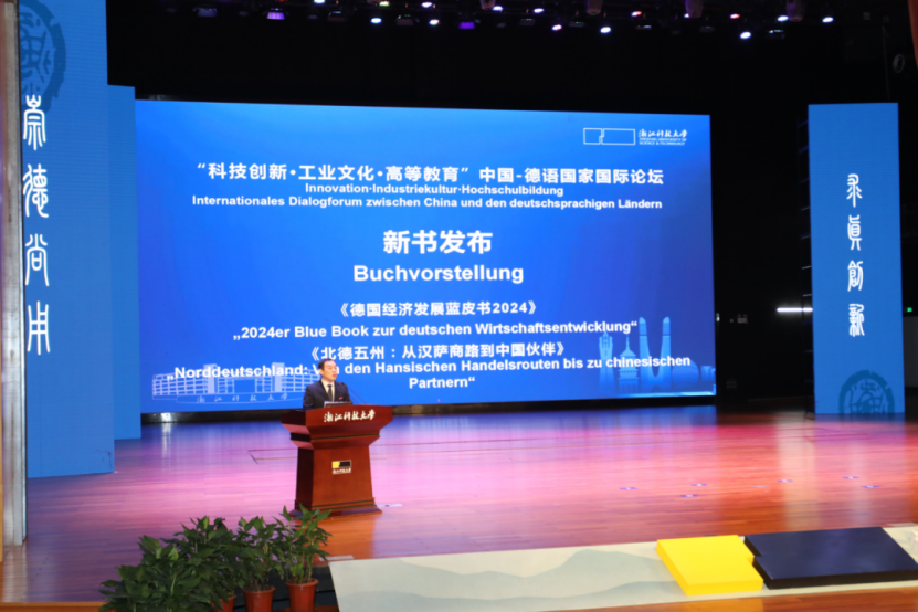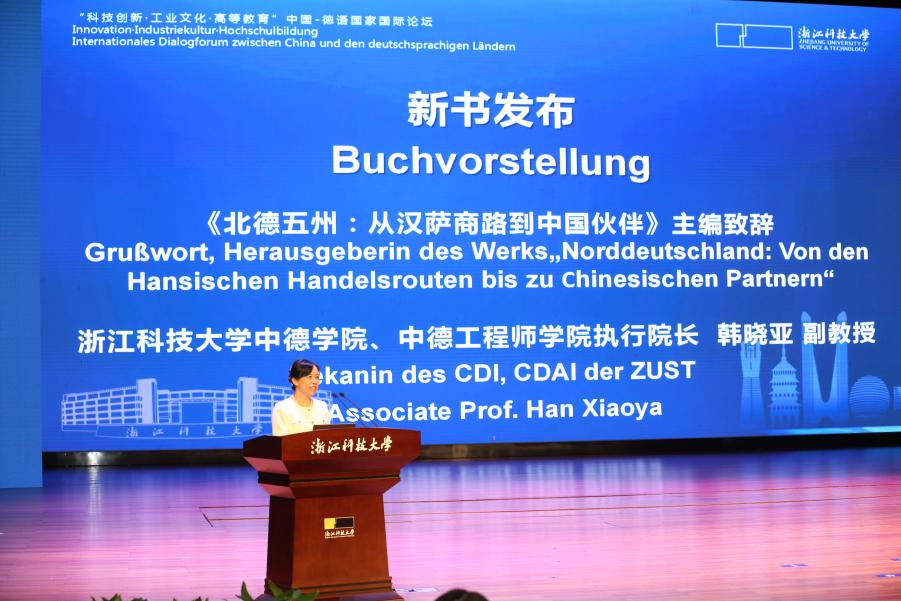 2025年10月19日,《北德五州:从汉萨商路到中国伙伴》一书在浙江科技大学发布,当天举行的“科技创新•工业文化•高等教育”中国-德语国家国际论坛为新书举办发布会,浙江大学出版社国际文化出版中心主任包灵灵、本书主编太阳集团中德公司、中德工程师公司执行经理韩晓亚致辞。发布会由太阳集团副董事长梁荣华教授主持。