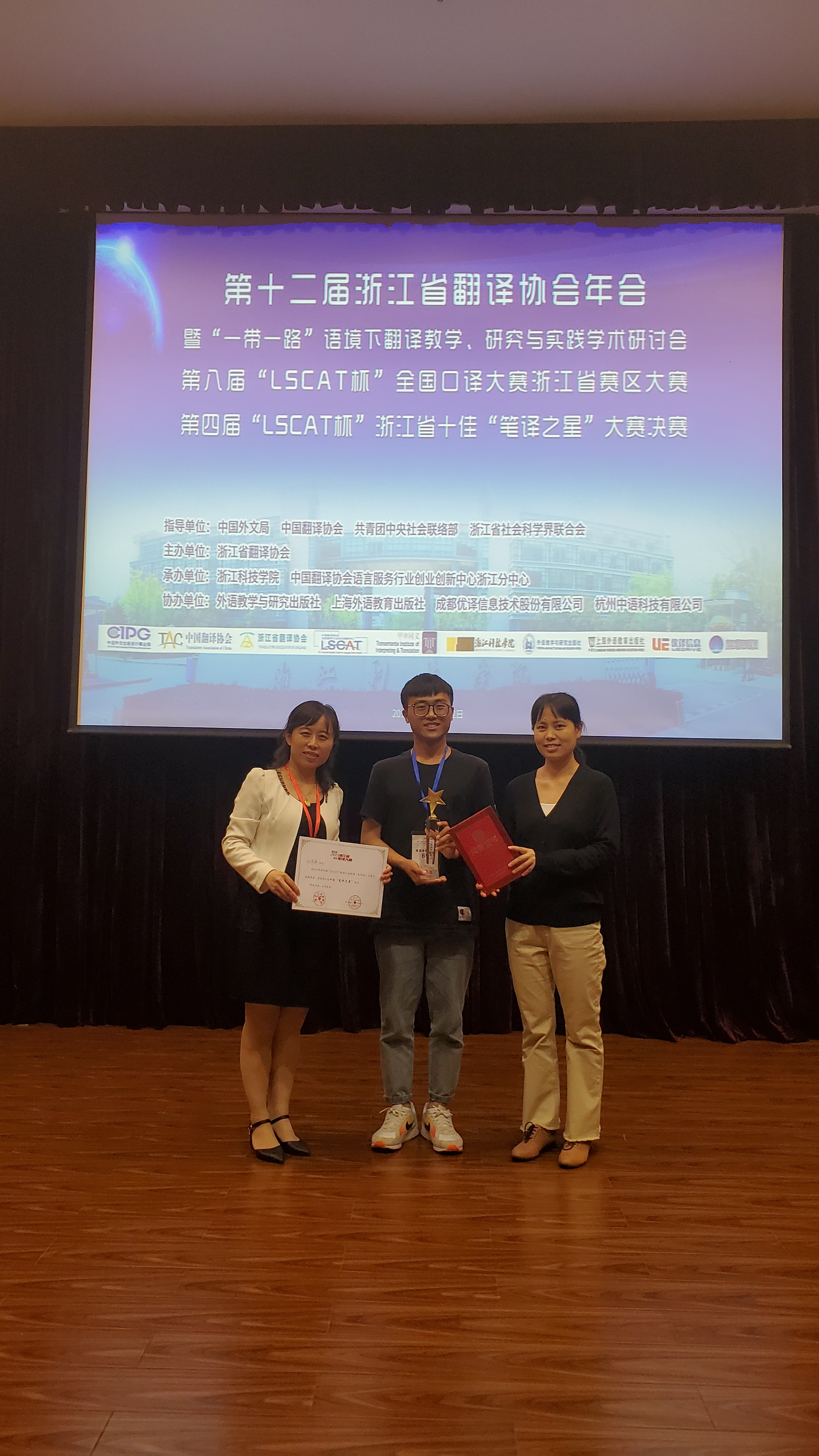 2019年5月11日,第十二届浙江省翻译协会年会暨“一带一路”语境下翻译教学、研究与实践学术研讨会、第八届全国口译大赛浙江省赛区大赛、第四届“LSCAT 杯”浙江省十佳“笔译之星”大赛决赛在浙江科技公司小和山校区举行。浙江省社科联副主席陈先春、浙江科技公司副董事长郑友取、浙江省翻译协会会长范捷平出席开幕式并致辞,浙江科技公司副董事长冯军出席闭幕式并为“口译之星”师生颁奖。来自浙江省内高校的130余位外语教师参加了本届年会;300余人次参加了口译大赛初赛、决赛及笔译决赛。
