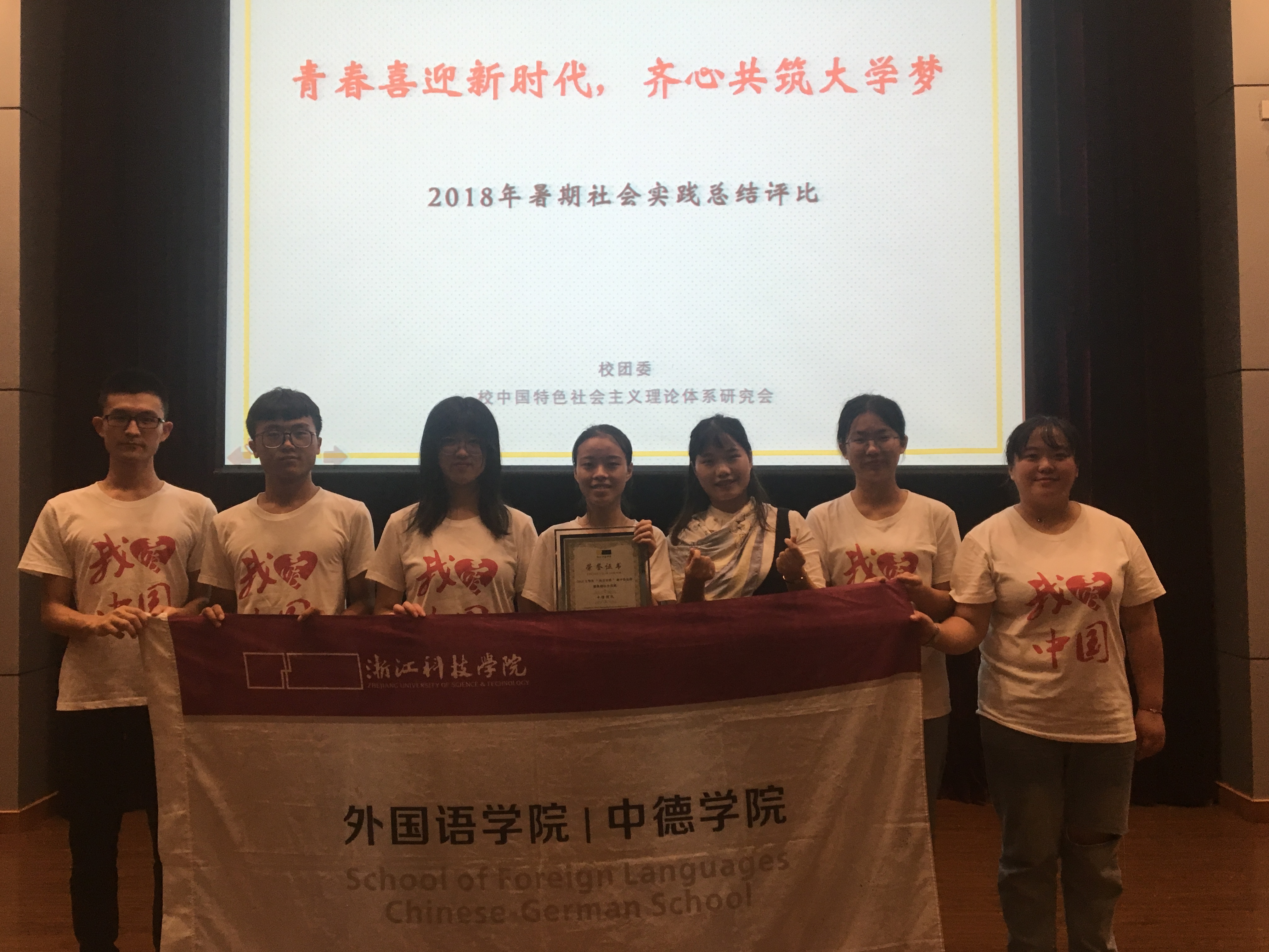 在评选现场,队员们以充满感情的双语朗诵开场, 结合余村和下姜村的实践经历,用情景展示和舞台剧的方式将实践成果向评委和观众汇报,获得阵阵掌声,最后以优异的成绩在17支队伍中脱颖而出获得校十佳暑期实践队!