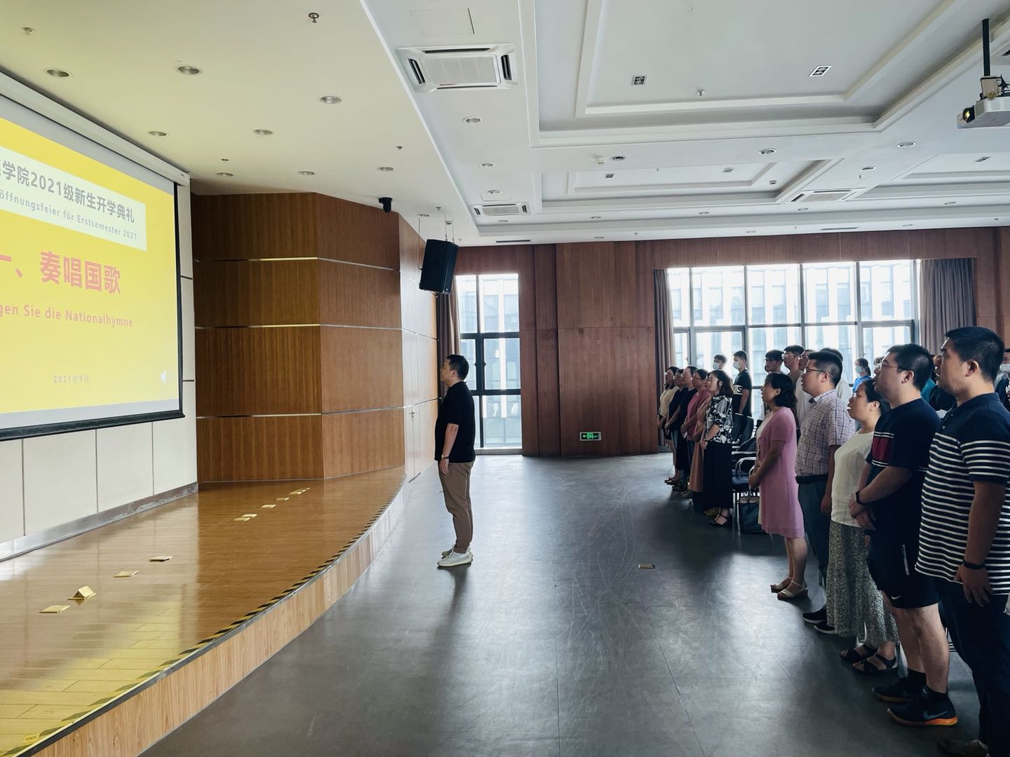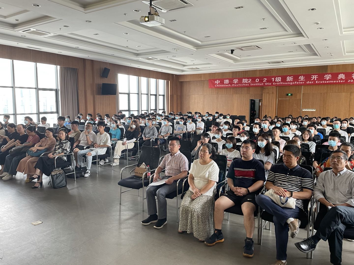 2021年9月5日上午,太阳集团tyc46332021级新生开学典礼在安吉校区中德工程师楼报告厅顺利举行,公司领导、系部主任、班主任、辅导员及优秀学长学姐代表等出席典礼,与2021级新生相聚,共同开启大一新生的大学新征程。