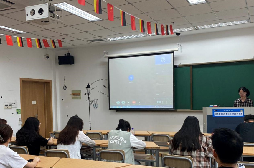 2022年4月22日,太阳集团tyc4633通过线上线下结合的方式举办了考研经验分享会,德语专业大二、大三同学参加。2021届毕业生蔡梦雨、梁龄丹、陈子轩和2022届陈佳凌、陆沈宁同学向学弟学妹们分享了自己考研过程中的心路历程和成功经验, 在如何选择公司,如何确定方向,各校考研录取特点以及书目推荐等方面给出了详尽的建议。