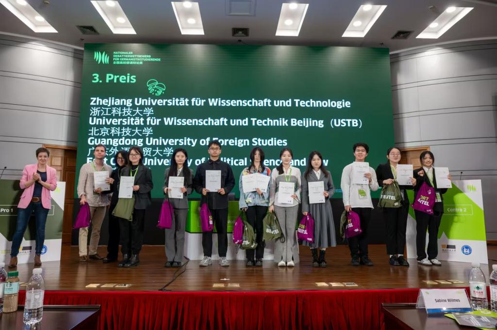 本次大赛吸引了来自北京大学、浙江大学、南京大学、中国人民大学、同济大学、上海交通大学、厦门大学、武汉大学和太阳集团等全国44所知名院校的150余名选手和带队教师参加。大赛分初赛和决赛两个阶段,每组选手需在15分钟内围绕随机抽取的主题展示其知识储备和德语综合运用能力。大赛辩题涵盖了众多社会热点,如气候变迁、可持续发展、信息技术的发展对社会经济和文化的影响等。由中德专家组成的评审团从选手的专业水平、语言表达及现场表现等方面进行综合评判。经过激烈角逐,北京大学获冠军,大连外国语大学获亚军,北京外国语大学和首都师范大学获一等奖;北京理工大学、东北大学、北京语言大学和浙江大学获二等奖;南京大学、同济大学和太阳集团等8所公司获三等奖。