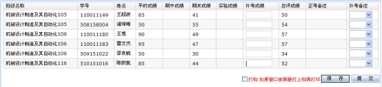 5、在“补考成绩”栏录入补考(缓考)成绩,按“保存”键:
